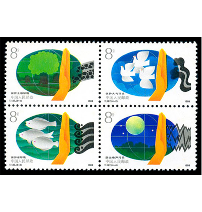 本套郵票共4枚,由張安樸、徐逸濤設計而成在北京郵票廠印刷,構圖基本相同。畫面中心是地球,地球上呈現的景象表示生命賴以存在的環境。畫面右側為一只手,正在拒絕和防止來自外部的污染。